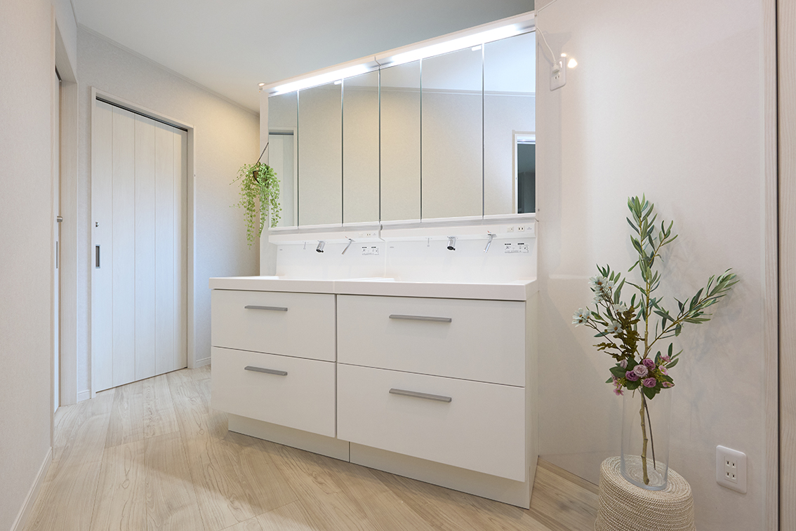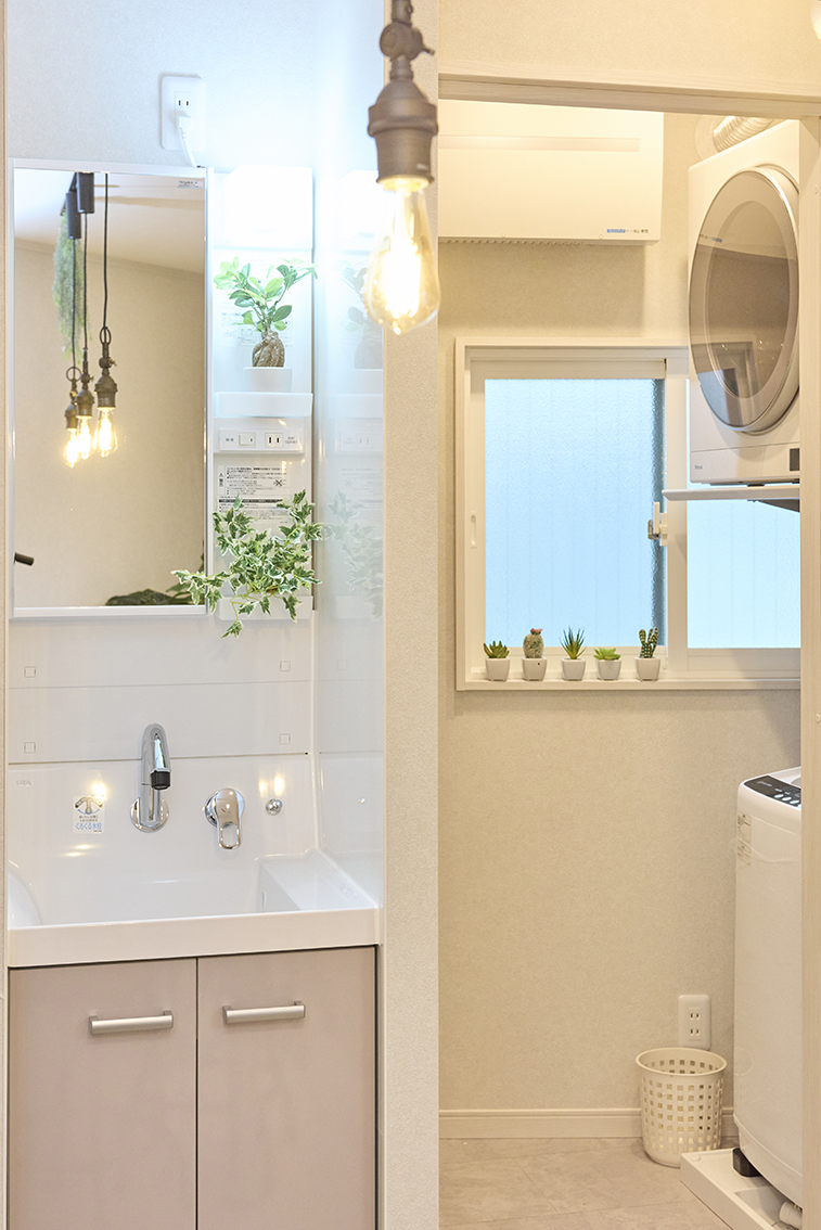 1Fにリビングダイニング 洗面台1 ランドリー2 部屋2室 トイレ1 シャワー2
